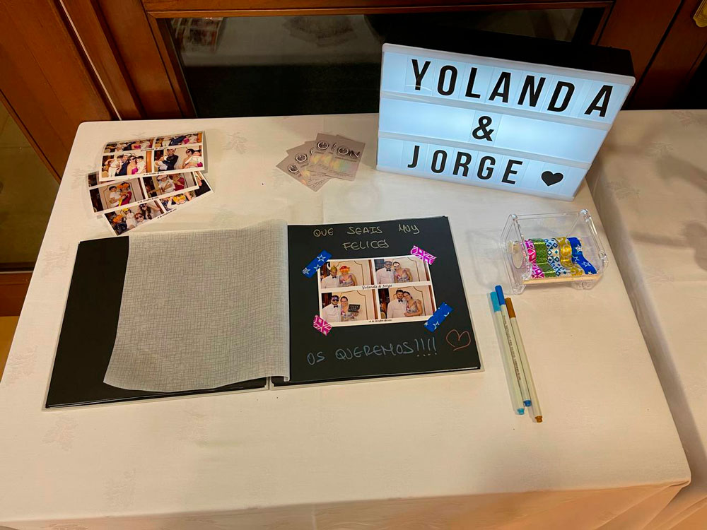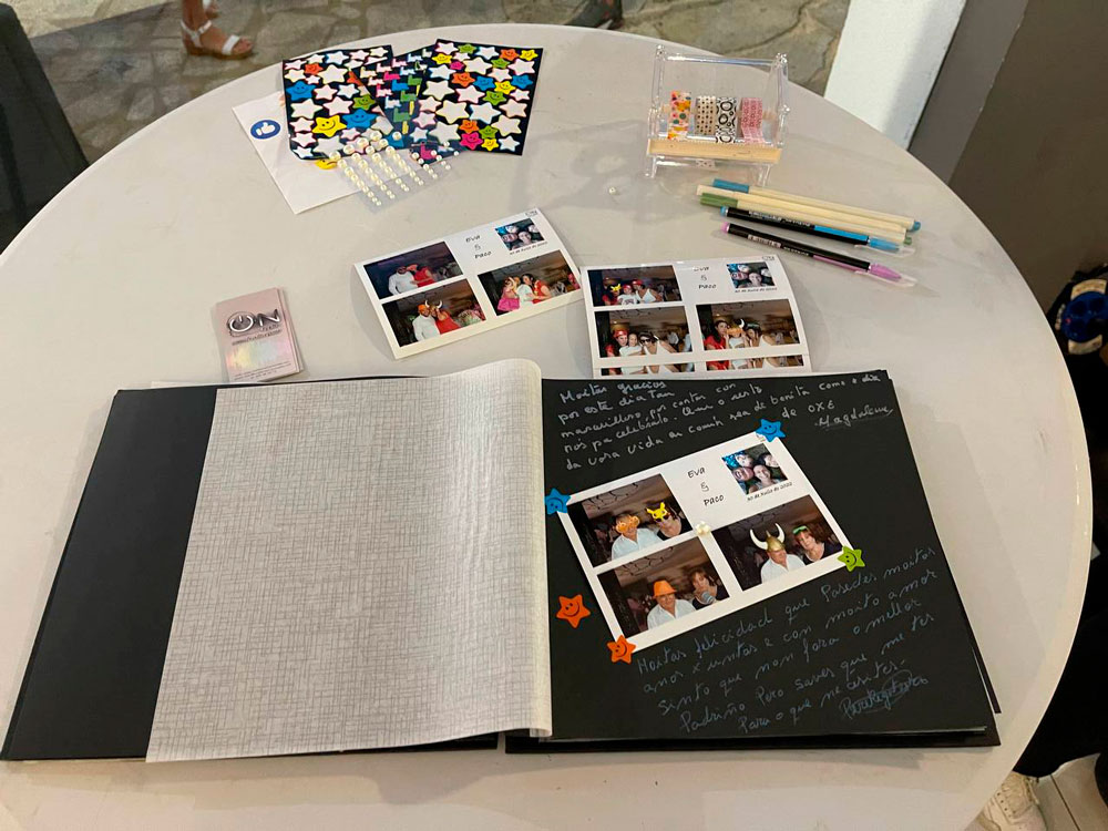 Inclúimos tamén a posibilidade de confeccionar un álbum durante o servizo, o noso persoal imprime as fotos e os teus invitados teñen a oportunidade de deixarche unhas palabras.